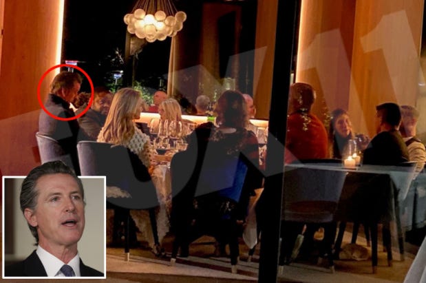 Despite totalitarian Covid edicts on California citizens, here he is violating his own edicts with friends: